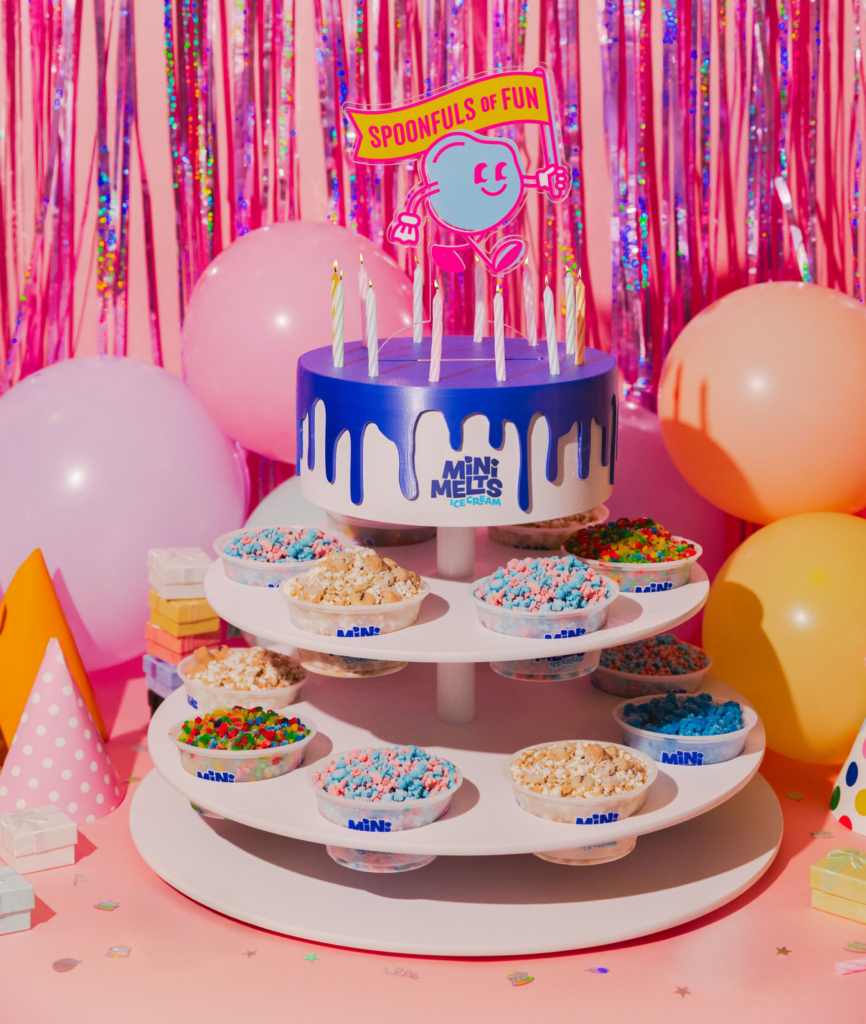 This fun, colorful tiered display includes 14 cups of Mini Melts ice cream, beautifully served on our signature birthday stand — complete with candles and party-ready presentation. It’s the perfect no-mess, no-cutting, no-serving dessert option for your celebration.