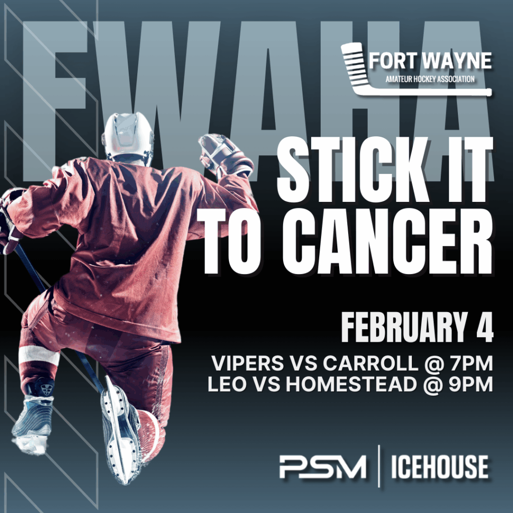 🎗️ Cancer Night February 4Join us for an important night of hockey and community as we support Cancer Night at PSM Icehouse. Vipers vs Carroll — 7:00 PM Leo vs Homestead — 9:00 PM |